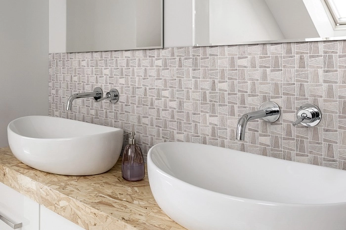 La mosaïque est une référence en matière de revêtement, pour habiller joyeusement et subtilement la salle de bain, mais aussi d’autres espaces de la maison. En crédence de cuisine, carrelage de salle de bain ou de toilettes, en frise mural d’un bureau ou d’un salon pour lui donner du relief, et bien sûr pour la mosaïque de la piscine, elle joue magnifiquement avec la lumière. Aujourd’hui parées d'élégants camaïeux, de reflets métalliques tendance ou de pierres naturelles, elle offre des combinaisons infinies pour toujours plus de personnalité. Et, en plus d’être d’une très grande résistance et antidérapant, elle est facile d’entretien et de pose.