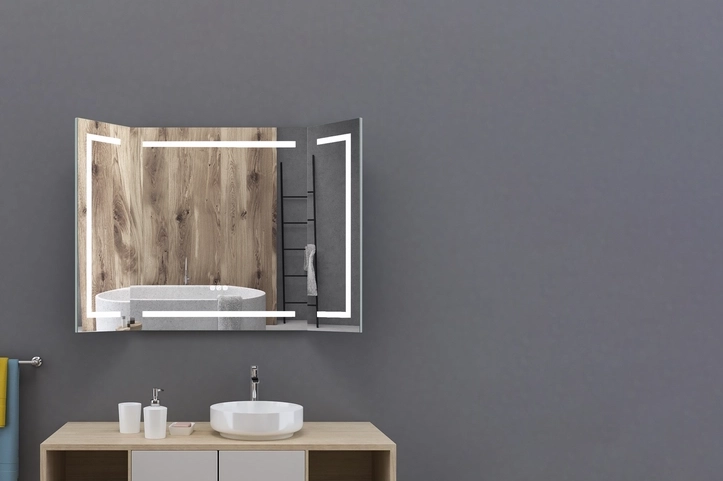 Dans toute salle de bain qui se respecte, un miroir trône en bonne place. Alors, puisqu’il est incontournable, choisissons-le au mieux : forme, dimensions, cadre… jouent un rôle important pour « agrandir » la salle de bain, l’éclairer, la rendre attrayante et confortable.