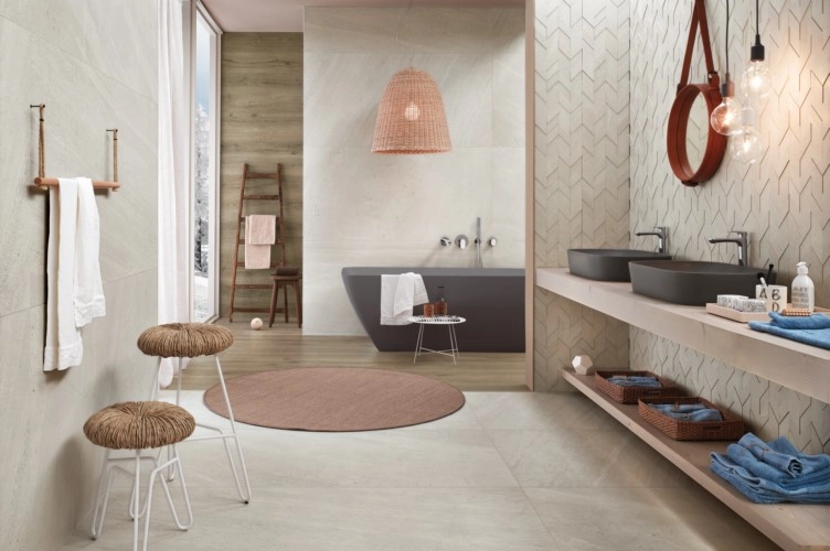 La beauté authentique révélée par les effets bois associés aux pierres naturelles du Nord de l’Europe.