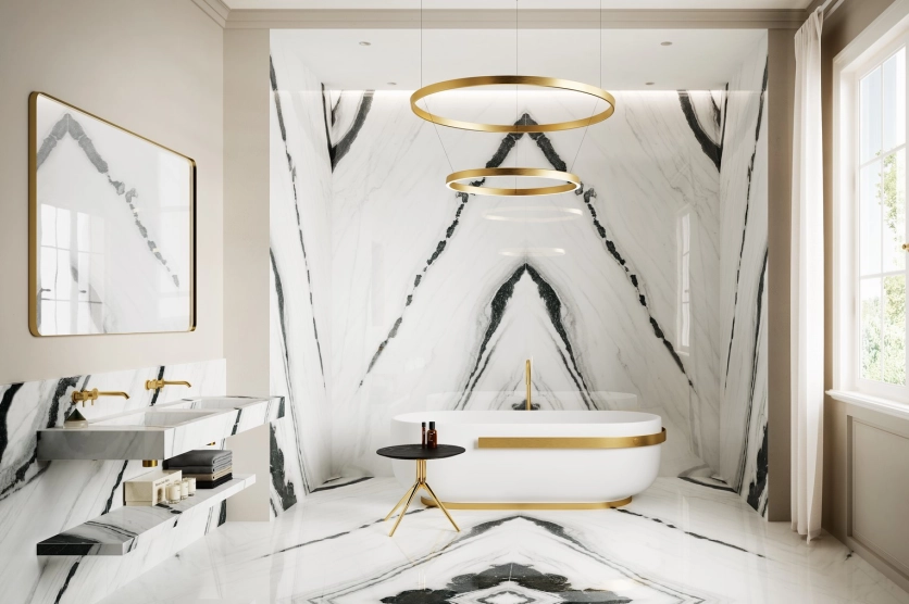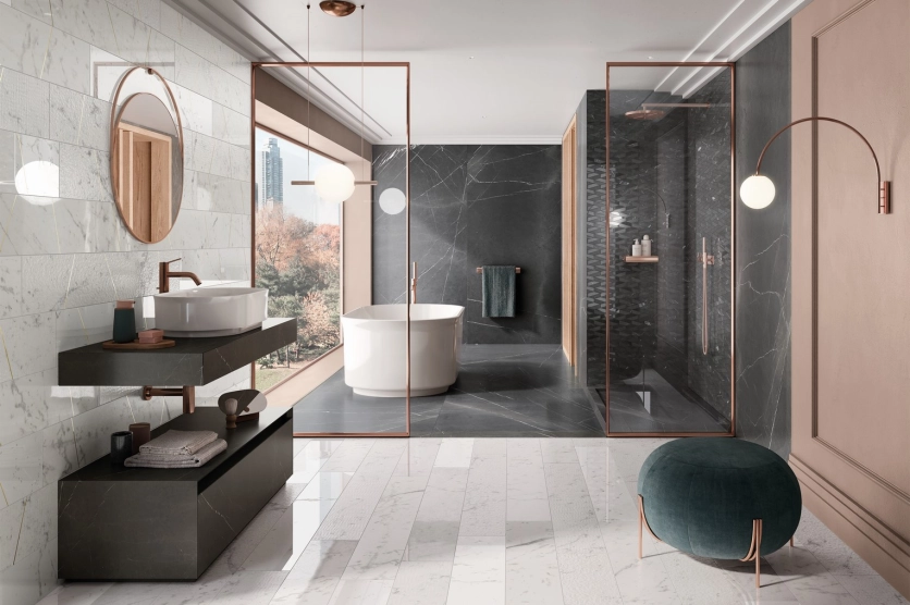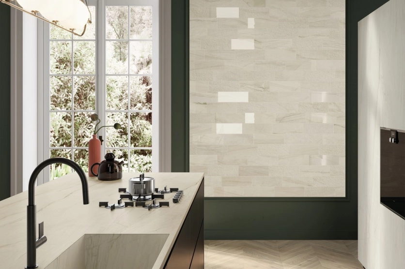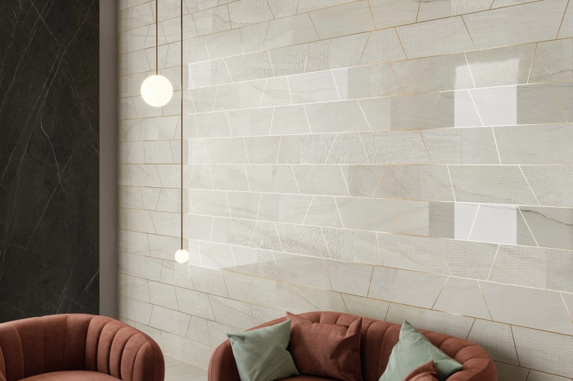 Le carrelage  SMOOTH rend hommage à sept somptueuses essences de marbre. La pureté naturelle des dalles « effet marbre » crée un alphabet de matières et compose un intérieur au design unique.