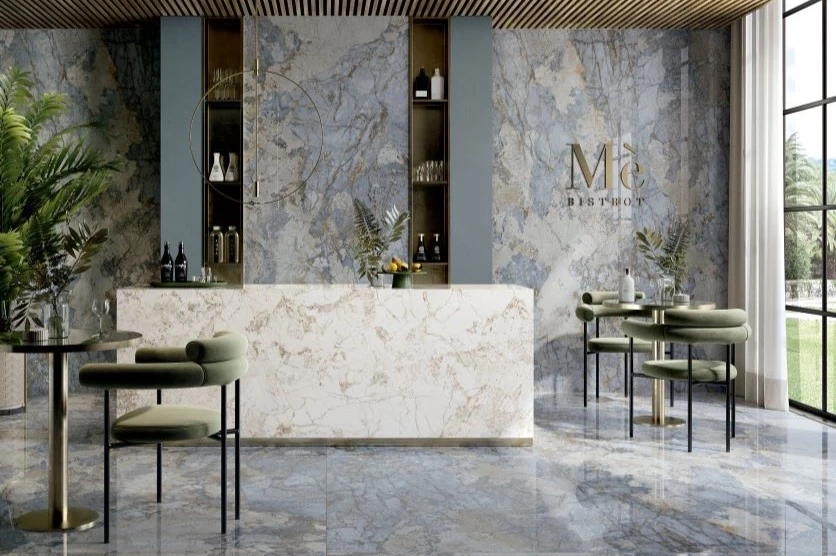 Un effet pierre volcanique en grès cérame pour ce carrelage proposé en format : 120x280; 60x60; 30x60 et 60x120.